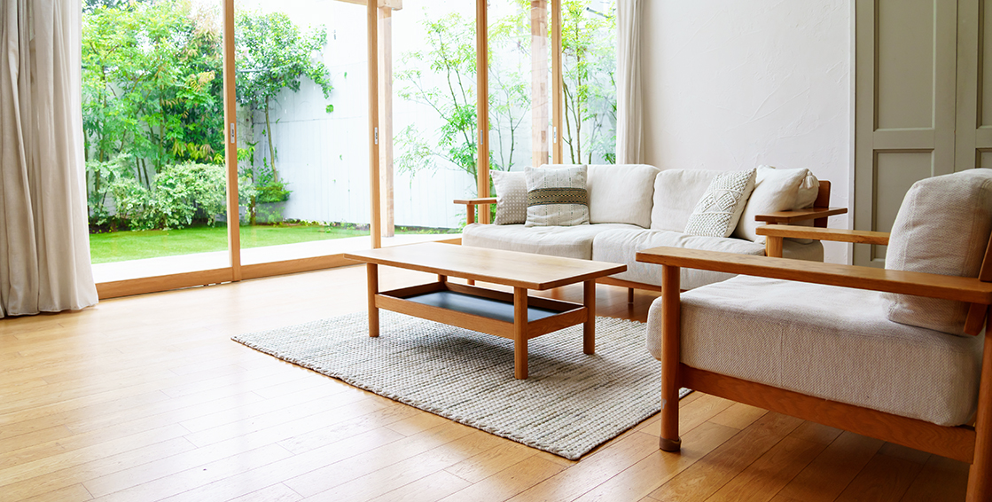 ハンツヤUVコーティング[瞬間硬化型」光沢や艶感を抑えつつも、硬さと適度なグリップカは維持されたフローリングは、床本来の自然な風合いを残しつつ、長きに渡り傷や劣化から守る効果を発揮します。“時代のニーズに寄り添い、幅広い層のご家庭に喜んでいただける、自を持って推奨できるコーティングとなっています。