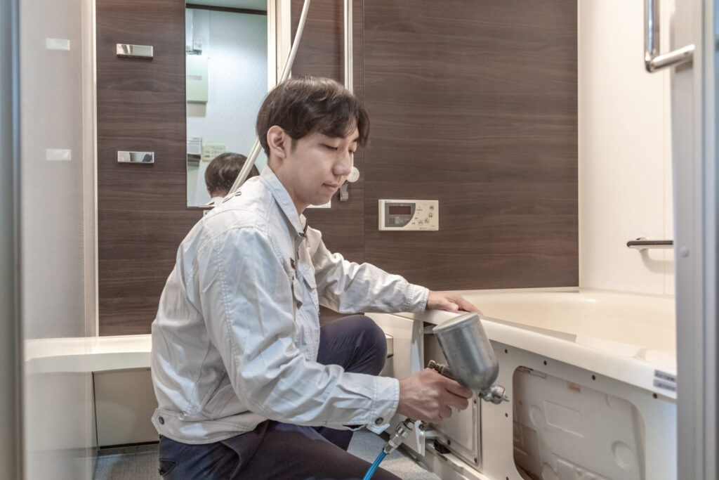 埼玉県 浴室エプロン内防カビコーティング エプロン内は湿気が多いのでしっかりと対策することが必要です。